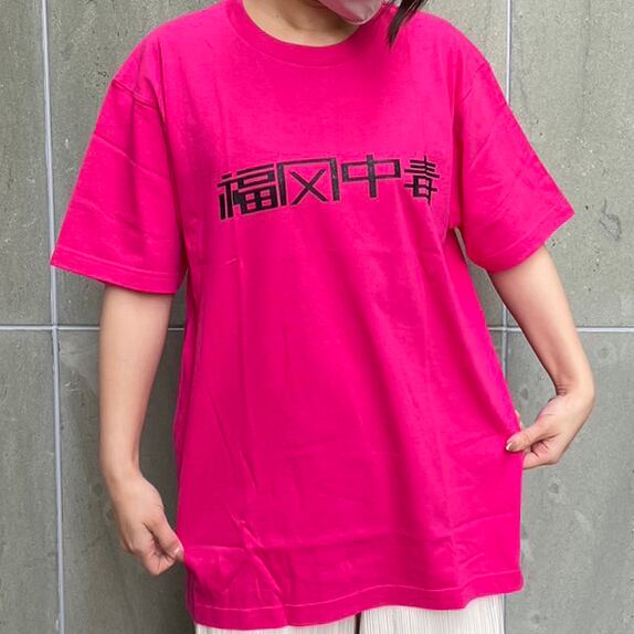 “福岡中毒”を胸に掲げるインパクト抜群のTシャツ。